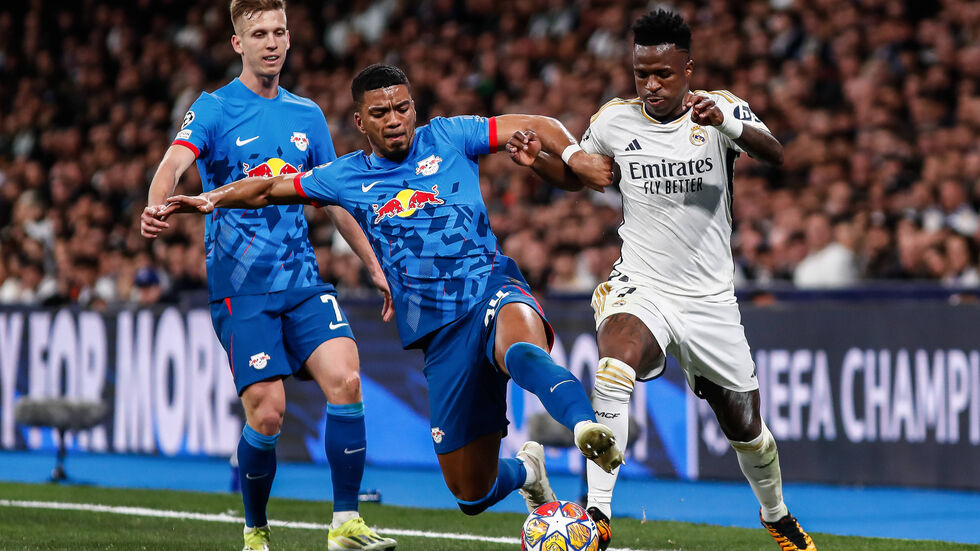 Bellingham trieb den Ball im Mittelfeld an und wartete geduldig auf den richtigen Moment. Dieser kam, als Vinicius Junior plötzlich und zu schnell für Orban den Laufweg änderte. Bellingham passte auf den Brasilianer, der aus kurzer Distanz die Führung schoss. Das war's, hätte man meinen können - doch RB gab nicht auf. Im Gegenteil. RB griff weiter an. Nach einer Flanke von David Raum machte Orban per Flugkopfball den Ausgleich.