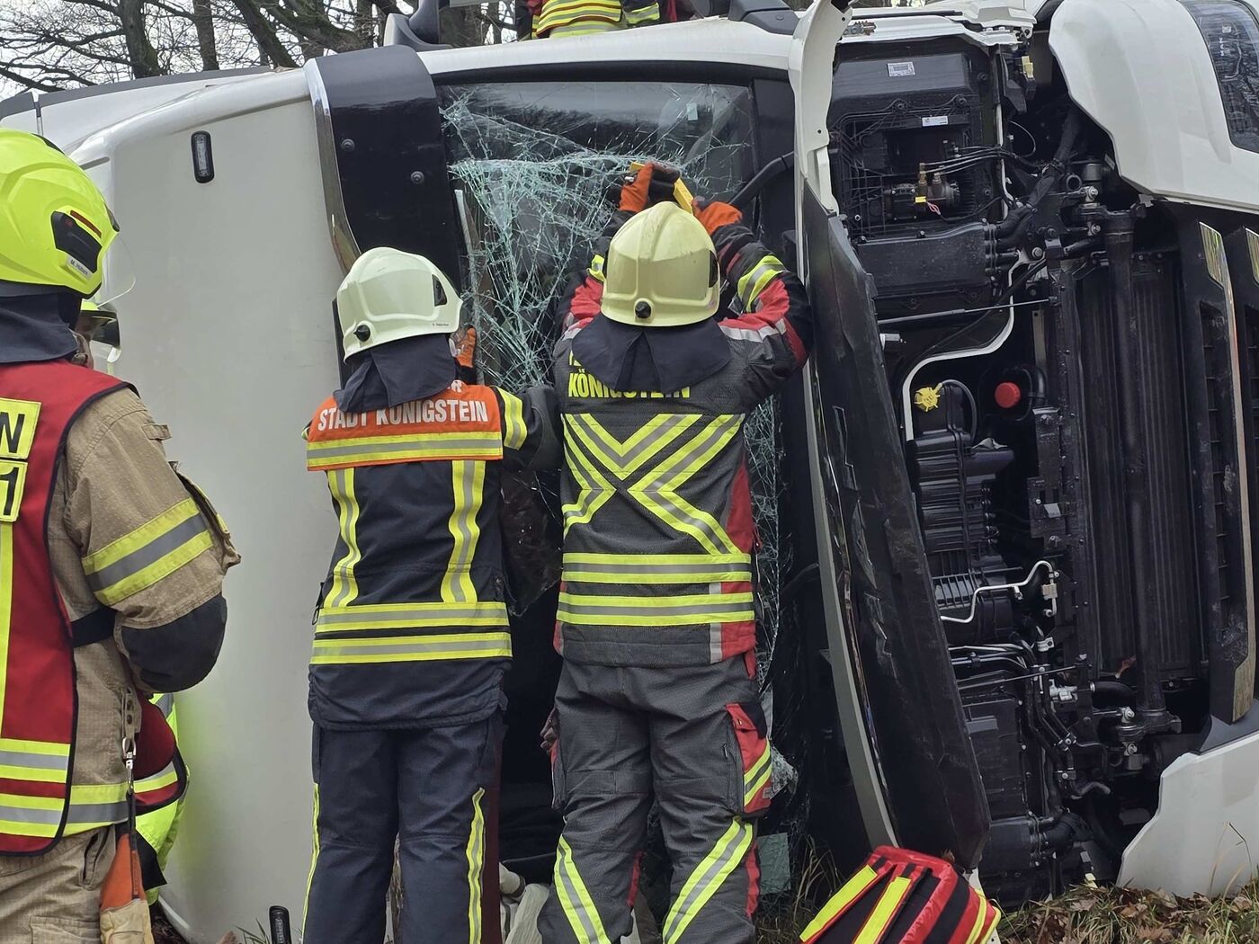 - Kameraden der Feuerwehr mussten den Polen durch eine zuvor herausgeschnittene Frontscheibe aufwendig aus dem Führerhaus befreien.