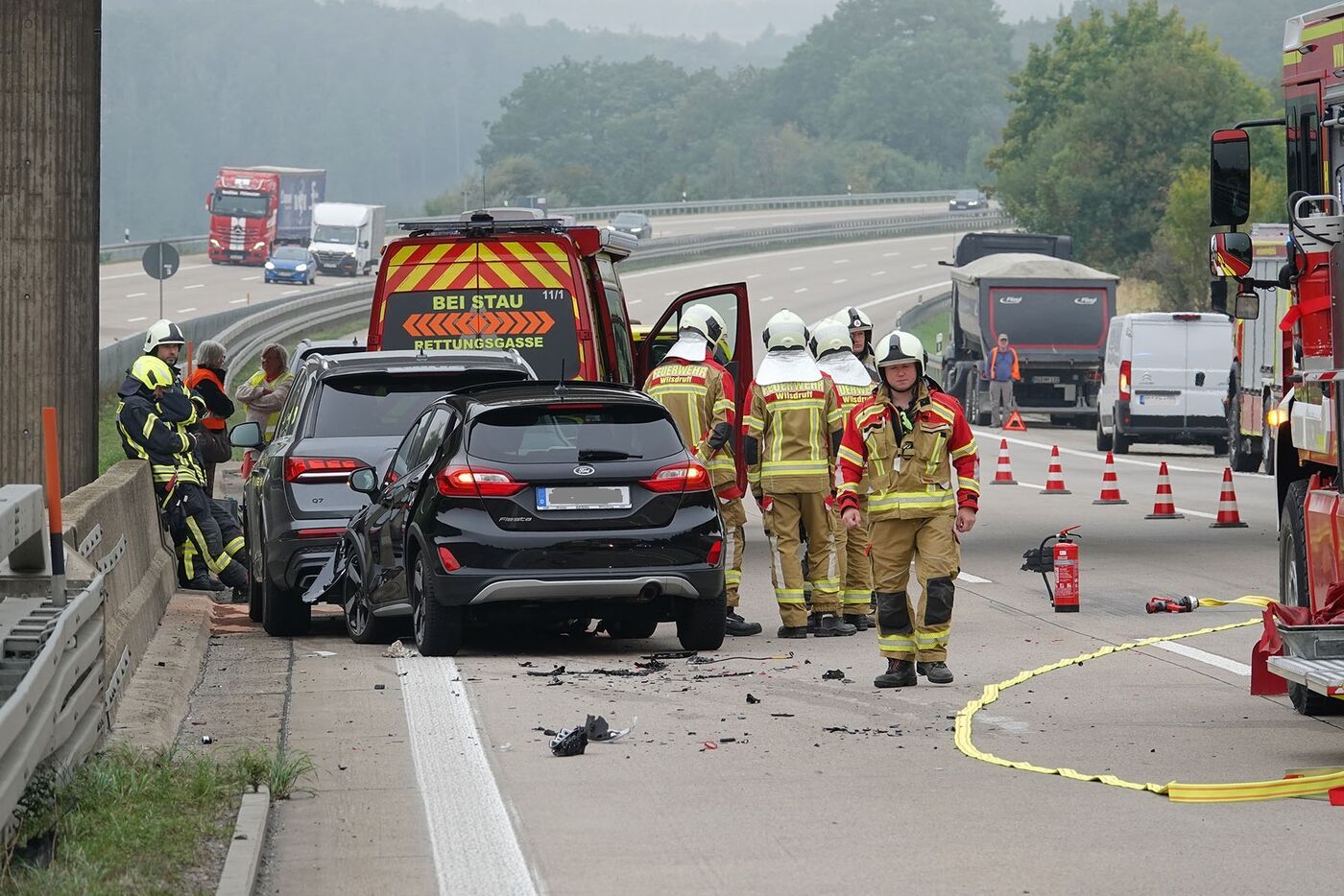 Etwa eine Stunde nach dem Unfall stießen ein Sattelzug und ein VW Golf auf der Ausweichfahrbahn zusammen. Der Sattelzug fuhr auf der rechten Spur, der VW auf der Standspur, auf der an der Unfallstelle vorbeigeleitet wurde. Als der Sattelzug die Spur wechselte, stieß er mit dem VW zusammen. Verletzt wurde niemand. Es entstand ein Schaden in Höhe von etwa 8.000 Euro. Durch die Unfälle kam es zum Stau auf der Autobahn.