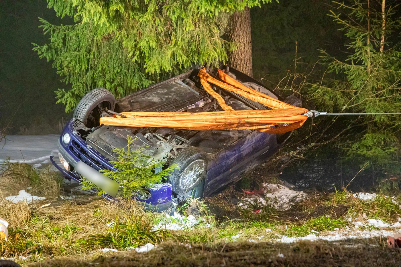 Unfall bei Oberwiesenthal: Wagen landet im Straßengraben