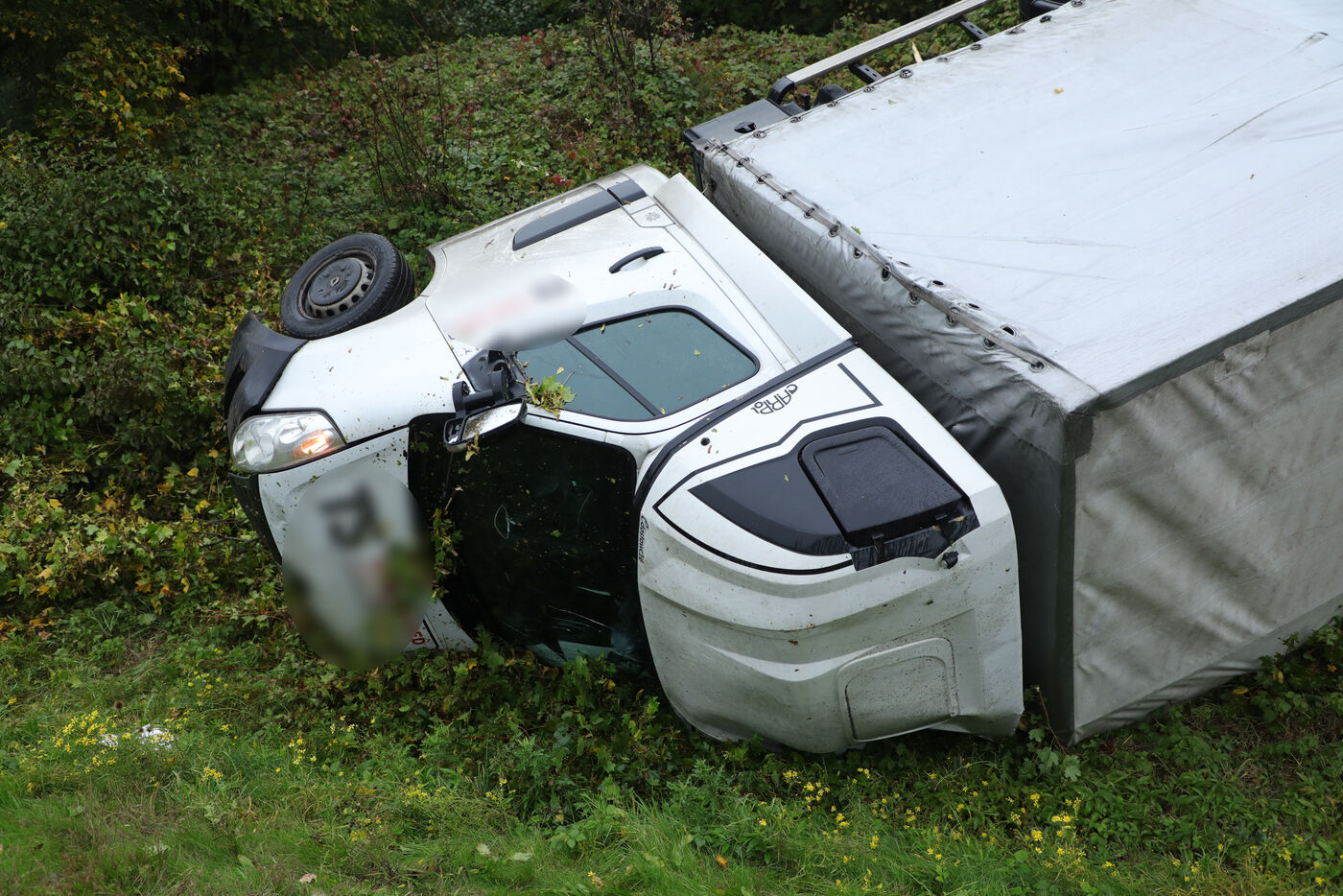 - Der Kleintransporter blieb im Straßengraben auf der Seite liegen.