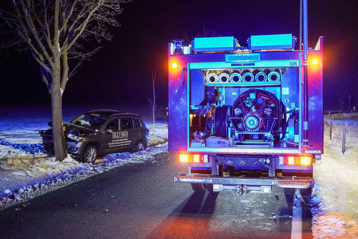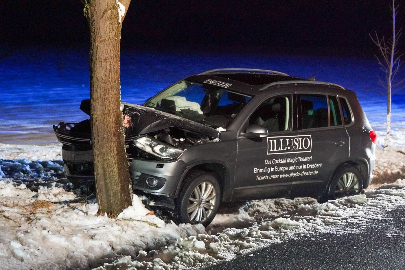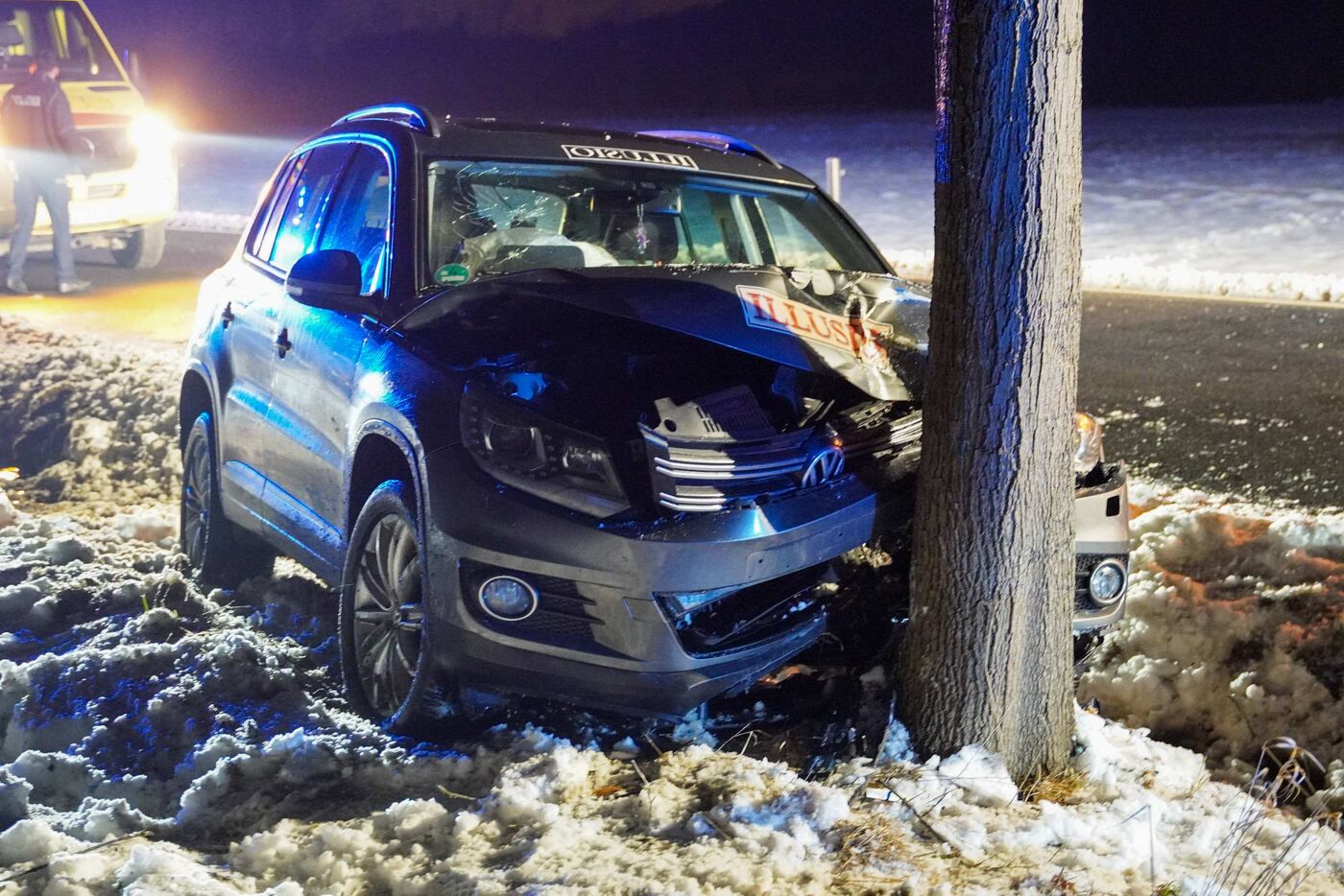 • Aus bislang ungeklärter Ursache kam das Auto von der Fahrbahn ab und prallte gegen einen Baum