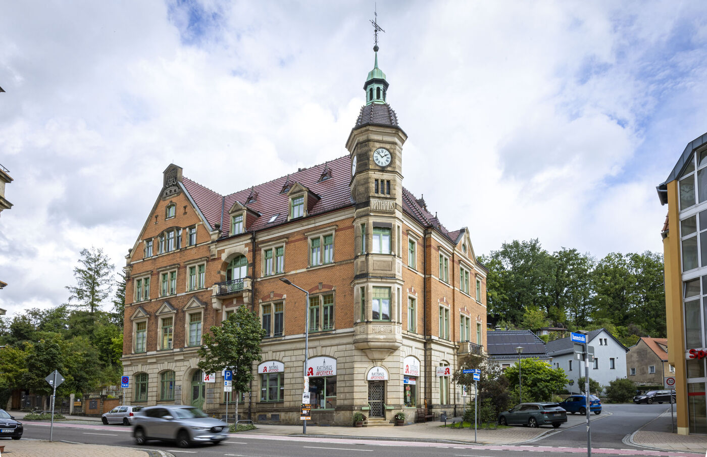 - Das alte Rathaus von Copitz wurde 1906 gebaut - mit Turm und Glocke