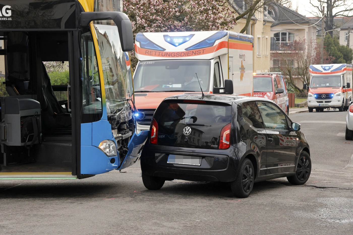 - Heftiger Unfall mit einem CVAG-Bus in Chemnitz: An der Kreuzung Louis-Schreiter-Straße/Georgenkirchweg prallten ein VW und ein Bus zusammen. Zwei Menschen wurden verletzt.