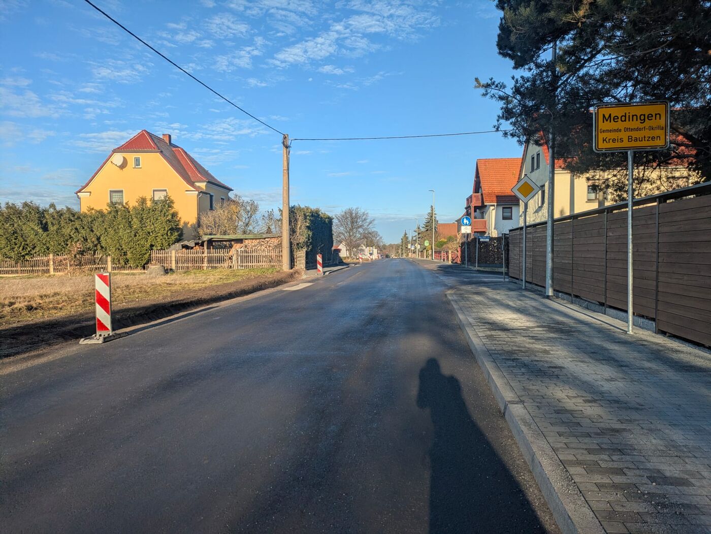 Nach rund zwei Jahren Bauzeit ist die Ortsdurchfahrt (K 9260) von Medingen-Hufen freigegeben. Das hat das zuständige Landratsamt in Bautzen mitgeteilt. Seit Freitag rollt der Verkehr auf der Weixdorfer Straße - fast zwei Monate später als geplant. Die fast 800  Meter lange Strecke wurde seit 2023 grundlegend modernisiert: Die Fahrbahn wurde verbreitert, ein Gehweg mit 2,50 Meter Breite angelegt und neue Regen- und Schmutzwasserkanäle angelegt. Auch die Beleuchtung wurde neu gemacht und zwei barrierefreie Bushaltestellen errichtet.
