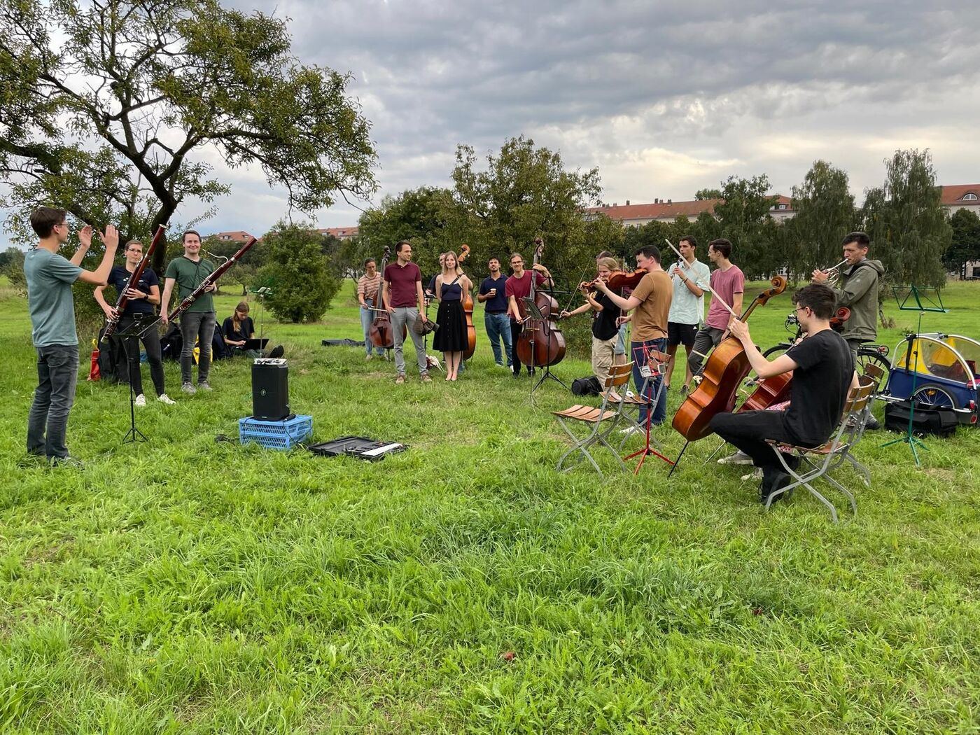 Okay, die Pauken haben gefehlt, doch das kommt noch. Denn genau das ist das Prinzip der Aktion vom Werkstatt Orchester Dresden e.V, sagt Dirigent Joschua Lettermann. Jeder Musiker mit Instrument und Stimme ist eingeladen mitzumachen.