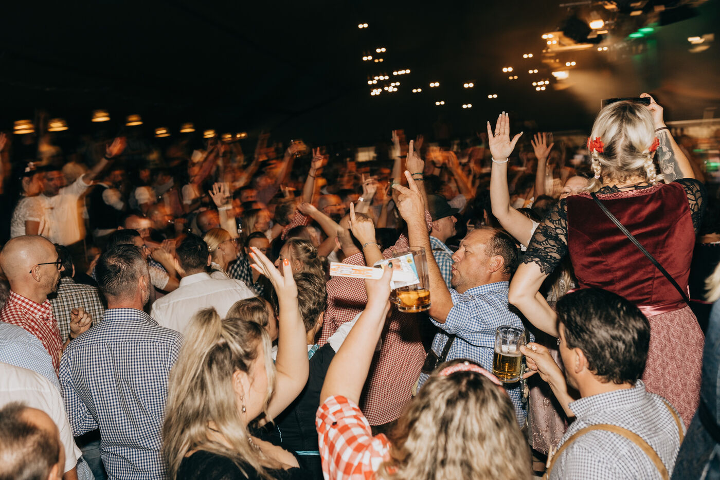 Die Kapelle „Lattentatra“ sorgt für den Takt, der das Zelt zum Wippen bringt. Auf den Tischen landen Haxn, Brathendl und Brezn. Im Glas schäumt Spaten hell. 5.000 Liter sind in den Fässern, die Maß gibt es für 12,50 Euro. Dazwischen die Wettbewerbe: Wer stemmt die Maß am längsten? Wer trägt das schönste Dirndl?