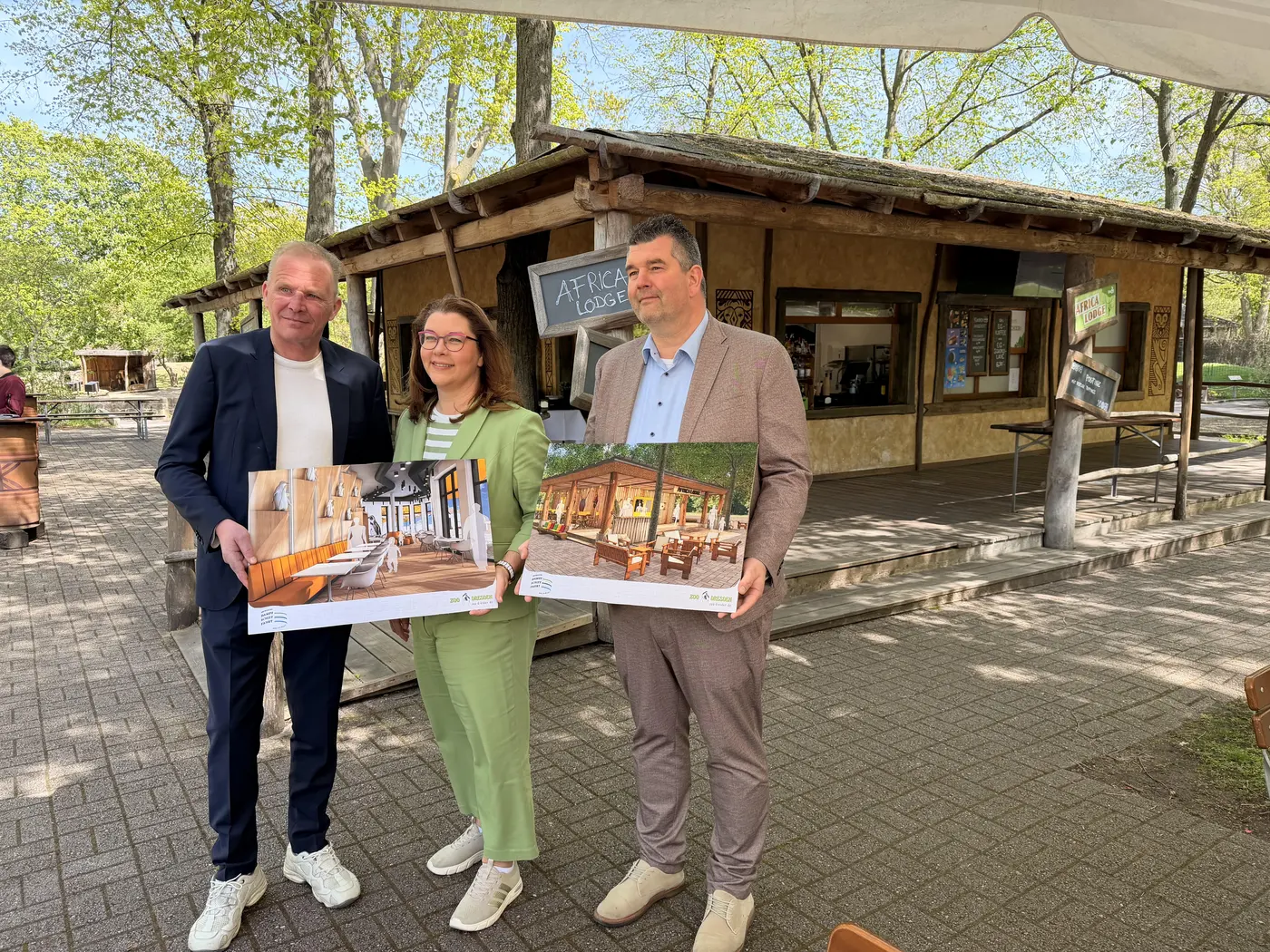 Als erstes großes Projekt wird die Africa Lodge Ende 2026 abgerissen und dann komplett neu gebaut. Pünktlich zum Start der Saison 2027 soll sie wieder öffnen – dann mit deutlich mehr Sitzplätzen und besseren Überdachungen für Regentage. Das Essensangebot wird komplett erneuert, wobei Klassiker wie Currywurst und Pommes natürlich auf der Karte bleiben.