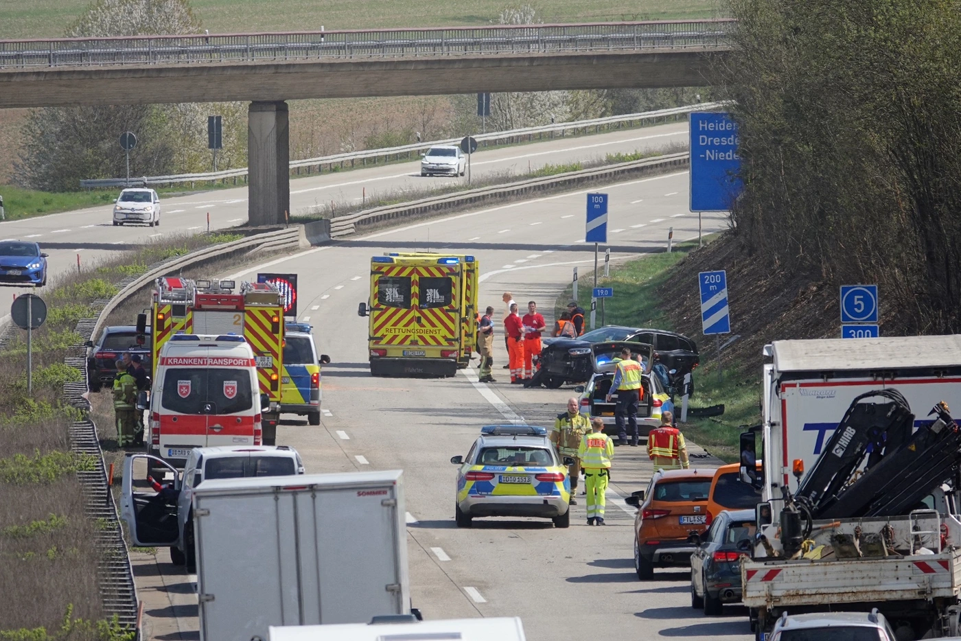 Einen weiteren Unfall auf der A17 gab es am Freitagmittag zwischen Dresden-Prohlis und Heidenau. Dort waren ein Renault und ein Mercedes zusammengestoßen. Sechs Personen wurden zum Teil schwer verletzt und in Krankenhäuser eingeliefert. An beiden Fahrzeugen entstand Totalschaden.