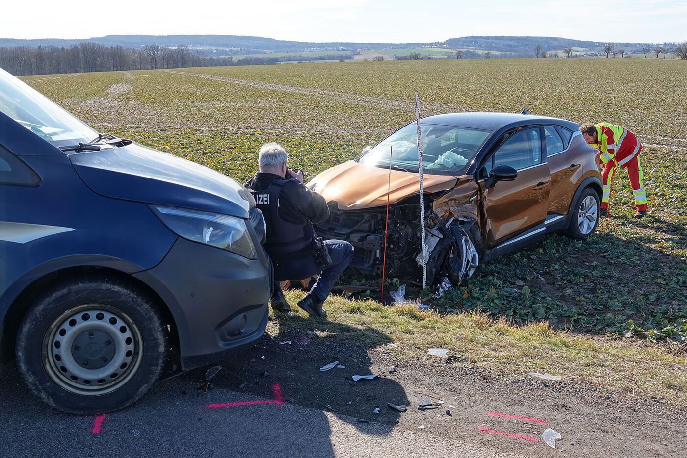 Die Freiwillige Feuerwehr Wilsdruff war zur Unterstützung des Rettungsdienstes und zur Sicherung der Unfallstelle im Einsatz. An beiden Fahrzeugen entstand Totalschaden. Die Straße der MTS musste für die Dauer der Unfallaufnahme und Bergungsarbeiten vollständig gesperrt werden. Der Verkehrsunfalldienst der Polizei hat die Ermittlungen zur genauen Unfallursache aufgenommen.