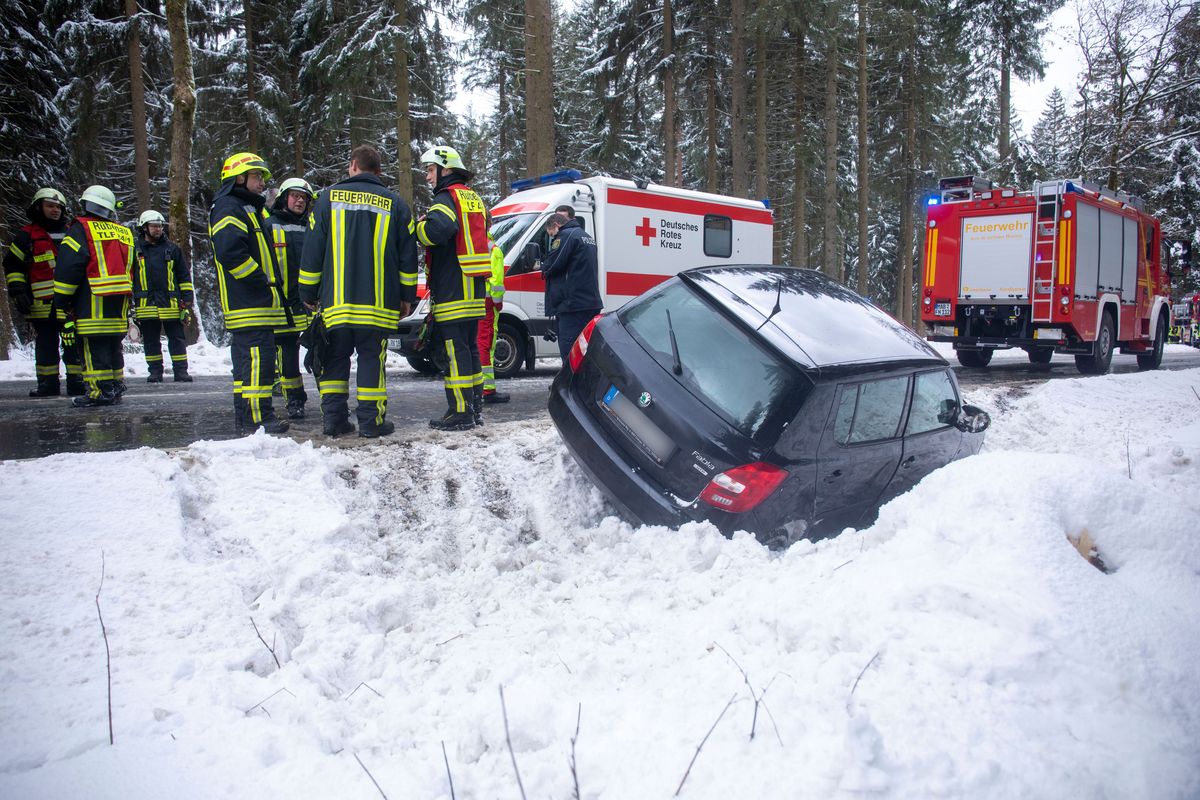 Zwei Verletzte bei Glätteunfall nahe Rübenau