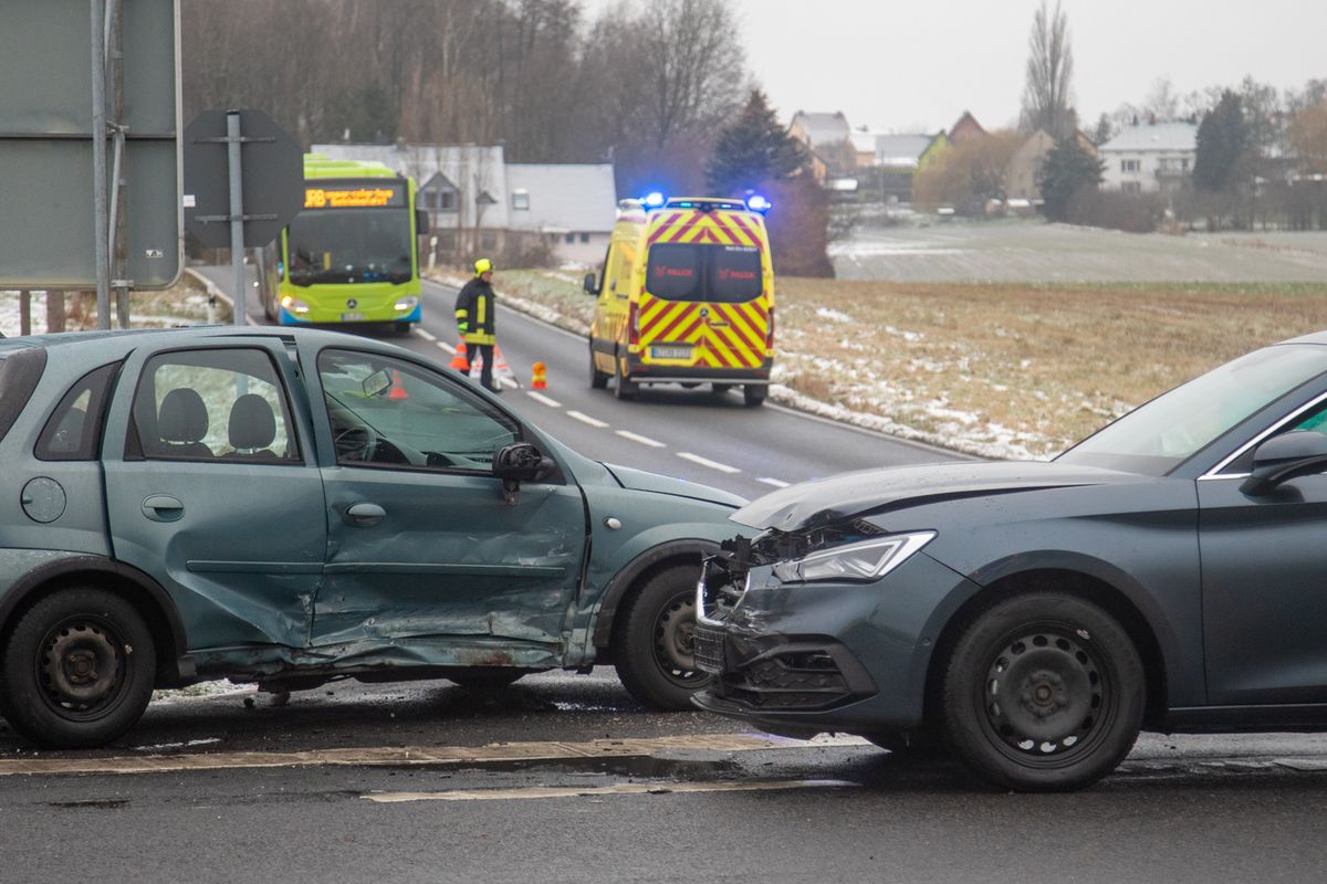 Bei einem Unfall auf einer Kreuzung zwischen Räckelwitz und Schmeckwitz bei Kamenz sind zwei Menschen verletzt worden. Heute Vormittag stießen zwei Pkw zusammen. Fahrer und Fahrerin wurden ins Krankenhaus gebracht. Ein Rettungshubschrauber landete. Feuerwehrleute sicherten die Unfallstelle ab. Beide Fahrzeuge waren nicht mehr fahrbereit und mussten abgeschleppt werden.